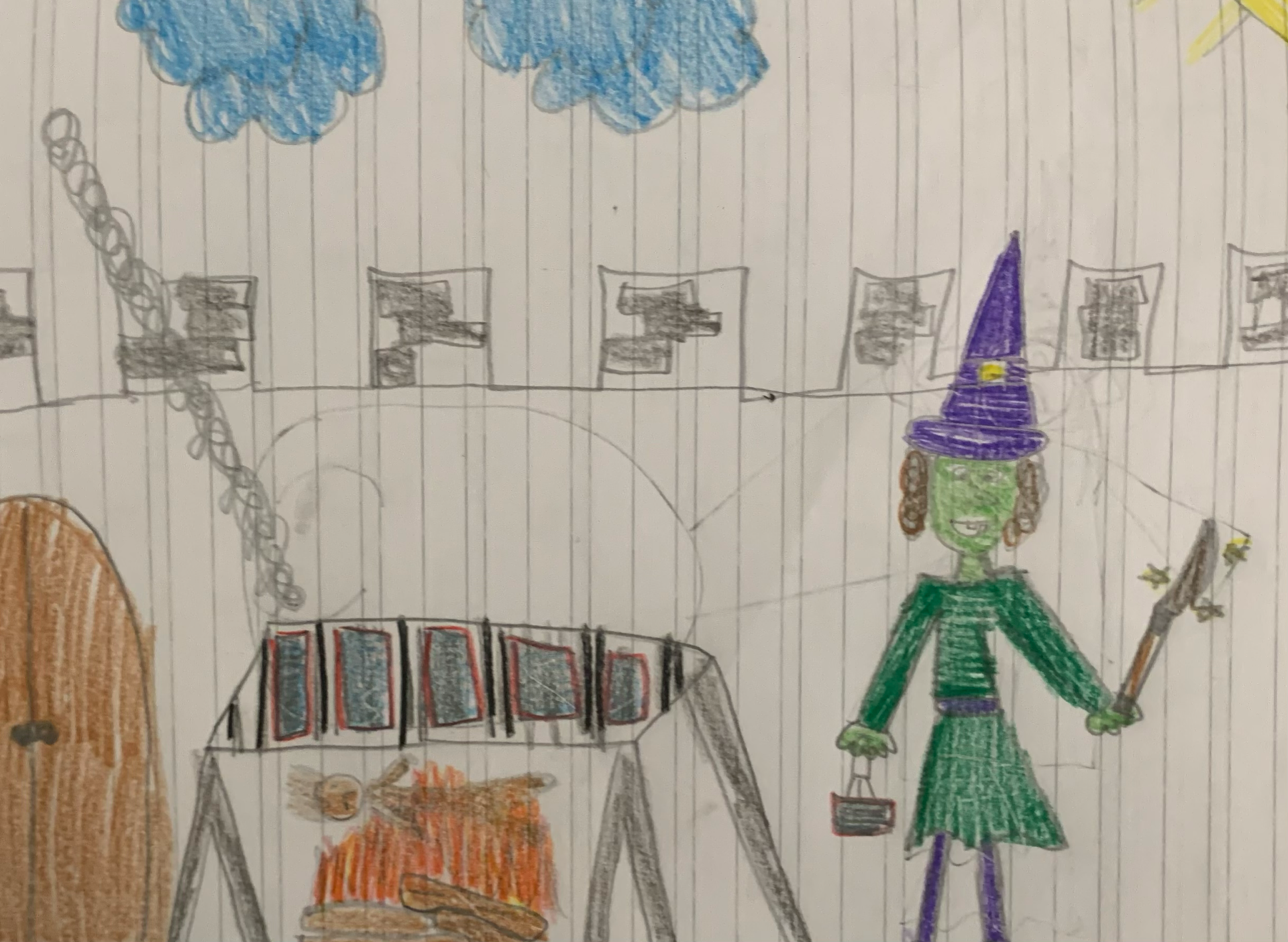 Un giorno Pinocchio vide una strega che aveva pescato una balena e si insospettì. Il giorno seguente la vide fare una festa con le sue amiche streghe e con i suoi amici maghi.
